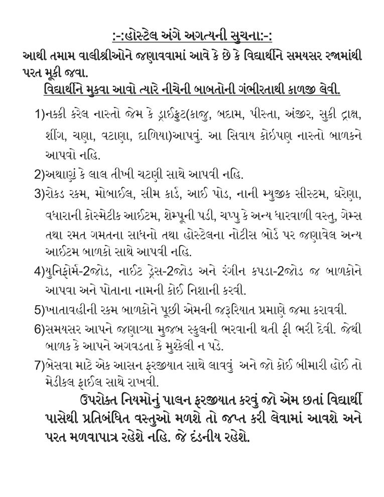 હોસ્ટેલમાંપરત મૂકી જવા: તા:26/10/2025 વાર:રવિવાર સમય: બપોરના 1.00 થી 4.00 સુધીમાં